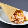 Anelli di calamari fritti in una leggera panatura, serviti nel caratteristico cartoccio