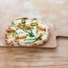 Margherita con bufala Dop, 1 tentacolo di polpo, 3 gamberoni alla griglia, pachino e rucolaLa pizza in pala romana