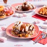 Waffle caldo con topping al caramello e con granella di nocciole