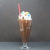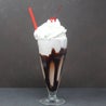 Gelato alla vaniglia, latte, banana fresca, burro di arachidi, topping al cioccolato e ciliegia al maraschino