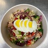 Misticanza, tonno, filetti di acciughe del Cantabrico, mozzarella, uovo sodo e pomodorini