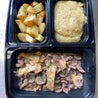 Con aglio, prezzemolo e funghi porcini; patate al forno e polenta