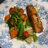 Insalata iceberg, carote, patate lesse, salmone grigliato, olive
