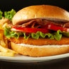 Pane, hamburger, formaggio cheddar, bacon croccante, pomodoro, insalata iceberg e salsa ketchup - servito con patate french fries