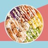 Gamberetti cotti e marinati con olio e limone, riso sushi, edamame, ananas, pomodorini, cavolo rosso, salsa di soia, maionese artigianale, semi di sesamo bianco, semi di sesamo nero