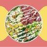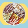 Tonno rosso, feta, riso sushi, peperoni, cetrioli, pomodorini, olive nere, salsa greca home made, olio extravergine, crispy onion.
