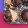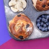 20 grammi di proteine al cioccolato, yogurt greco senza lattosio, latte di soia, farina di riso, avena e mandorle, uova, gocce di cioccolato fondente senza zuccheroMuffin proteico alla frutta