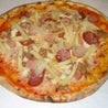 Pomodoro, mozzarella, funghi, wurstel, cipolla.
