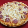 Pomodoro, mozzarella, salsiccia secca, panna.Peperoni