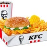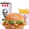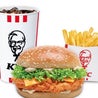 Menu con un contorno a scelta, una bibita e il Burger del Colonnello. Bacon, formaggio, insalata, salsa barbecue, maionese e un irresistibile filetto Original Recipe, preparato secondo la sua leggendaria ricetta, con il mix segreto di 11 erbe e spezie.