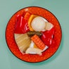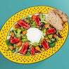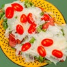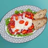 Porchetta, stracciatella di burrata pugliese, pomodori piccadilly a spicchi e foglie di rucola