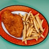 Cotoletta fritta con patatine fritte e bibita a scelta