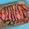 Tagliata di controfiletto, razza Black Angus, 220gr. Accompagnata da funghi champignon e scaglie di pecorino sardo DOP Fratelli Pinna