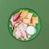 Mini gnocco fritto servito con prosciutto crudo di Parma DOP, porchetta Fratelli Corrà e salsa di grana bella Lodi