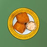 Cubotti di mozzarella campana panati e fritti, ripieni di prosciutto cotto, con maionese di peperoni rossi e gialli