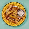 Patate fritte con buccia e servite con maionese alla birra