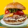 Hamburger di mais, provola affumicata, pomodoro aromatizzato con timo, battuto di cipolla rossa di Tropea IGP in agrodolce, cavolo cappuccio e maionese