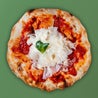 Salsa di pomodoro San Marzano DOP, fette di melanzane al forno, Fior di latte, salsa di grana bella Lodi e basilico