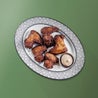 Filetto di Black Angus Premium, 220gr, avvolto con lardo alle erbe. Accompagnata da funghi champignon e scaglie di pecorino sardo DOP Fratelli Pinna