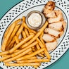 Tagliata di petto di pollo alla brace, con patatine fritte e bibita a scelta
