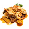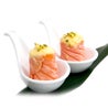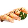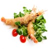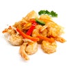 fiori di zucca ripieno di granchio, gamberi con salsa teriyaki