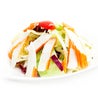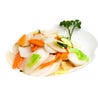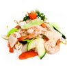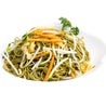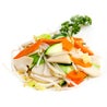 gamberi, zucchine, carote, germogli di soia, cipolla