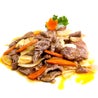 gamberi, uova, carote, zucchine, cipolla, germogli di soia