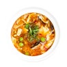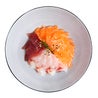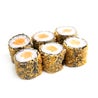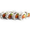 alghe giapponese, salmone, cipolla fritta, fagioli di soia, avocado, mango, salsa teriyaki e salsa mango
