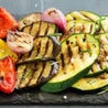 Melanzane zucchine e pomodoro grigliato con pecorino frescoSchiacciata di ritorno dal bosco