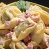 Ravioli ripieni di ricotta e spinaci, con pomodoro panna e basilico