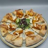Fior di latte, burrata, petali di zucca cotti al forno, pancetta croccante, mandorle