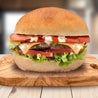 DOPPIO TRAMEZZINO / POLLO RUSPANTE ALLO SPIEDO / POMODORO / INSALATA / BACON / SENAPE / MAIONESE