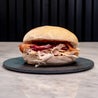 Mezzo Ruspante marinato con aglio, rosmarino, semi di canapaPanini