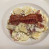 e Pancetta croccante (besciamella, parmigiano, pistacchio)