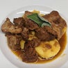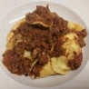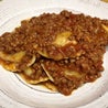 Ravioli tipici lucchesi ripieni di manzo, maiale, mortadella, bietola, sedano, carota, cipolla, prosciutto, pecorino, parmigiano, pecorino al ragù di chianina