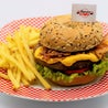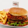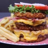 Il più famoso burger america graffiti. Tutto raddoppia! pan brioche, 2 hamburger tuscany, doppio bacon, doppio formaggio fuso con cheddar con lattuga e pomodoro