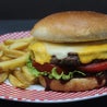 Pane, hamburger con lattuga, pomodoro, formaggio fuso con cheddar, formaggio edamer e salsa barbecue
