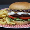 Pane, hamburger con lattuga, pomodoro, bacon, cipolla rossa caramellata, salsa fuego, jalapenos a rondelle, formaggio fuso con cheddar - piccante