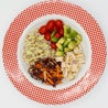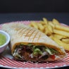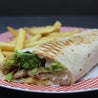 Lattuga, rucola, pomodoro, pomodorini datterino, cotoletta di pollo* panata e fritta, mais, salsa ranch e crostini di pane