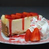 Classic cheesecake guarnita con fragole fresche e topping alla fragola