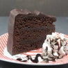 Gustosa torta a base di biscotti oreo® e mousse di cream cheese e cioccolato, servita con topping al cioccolato e scaglie di cioccolato