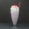 Gelato alla vaniglia, latte, banana fresca, burro di arachidi, e ciliegia al maraschino