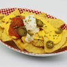 Triangolini di mais caldi con salsa messicana, salsa cheddar, sour cream, jalapenos a rondelle, ed erba cipollina - piccante - vegetariano