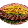 Lattuga, rucola, pomodoro, pomodorini datterino, fettine di manzo cotte alla griglia e crostini di pane*