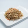 Spaghetti di riso saltati con verdure, uovo e gamberi