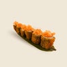 hosomaki fritto con salmone e tartare di salmone in cima