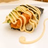 roll con tempura di gambero, maionese e topping di pasta kataifi e salsa teriyakispecial tiger roll