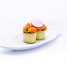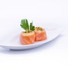 Bocconcini di riso avvolti da salmone, tartar di salmone