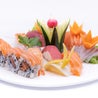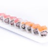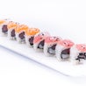 6 sashimi, 6 nigiri, 4 uramaki, 1 gunkan, 1 scampo