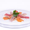 Salmone, tonno, branzino, 1 scampo, 1 gambero rosso di MazaraTartare